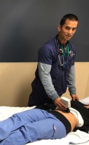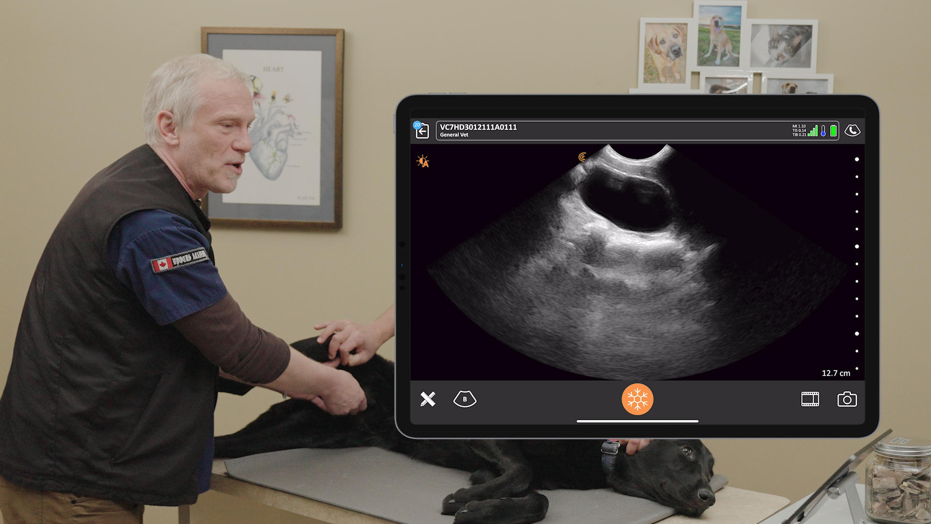 By using the Clarius scanner he is able to assess the kidneys and the bladder to look for any signs of hydronephrosis or kidney stones.