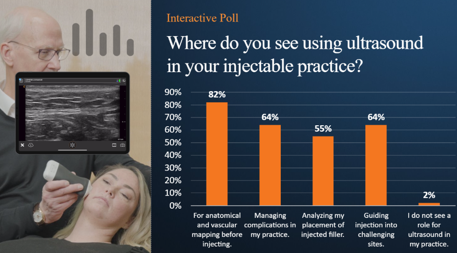 Dr. John Arlette, a dermatologist and expert in the use of ultrasound in aesthetic procedures, joined us to present a webinar on how ultrasound can be used to enhance safety and precision in jawline rejuvenation. More than 1700 clinicians registered for the popular webinar. A poll of attendees revealed that most clinicians are considering ultrasound for anatomical and vascular mapping before a procedure.