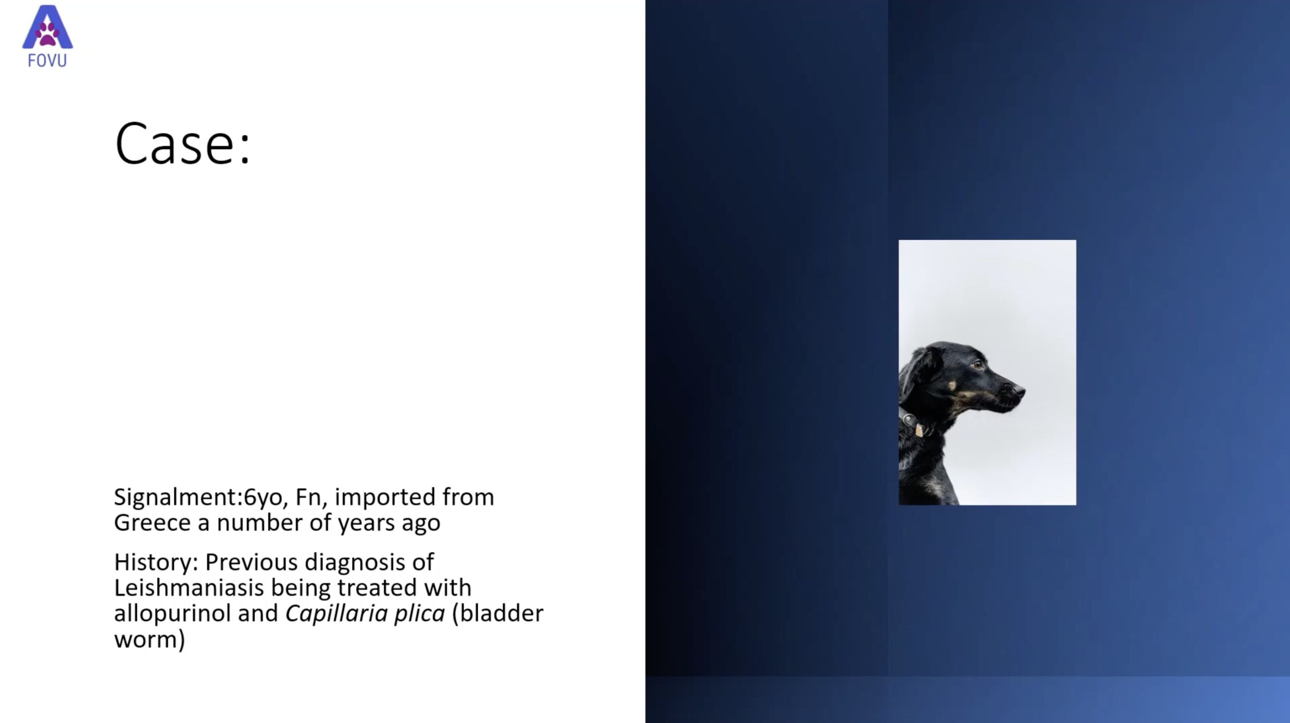 History: Dr. Edwards was asked to perform an abdominal ultrasound on a 6-year-old female neutered dog who was imported from Greece to the United Kingdom (UK) several years ago. She had a previous diagnosis of Leishmaniasis which is being treated with allopurinol and was recently diagnosed with Capillaria plica (bladder worm), which is uncommon in the UK.