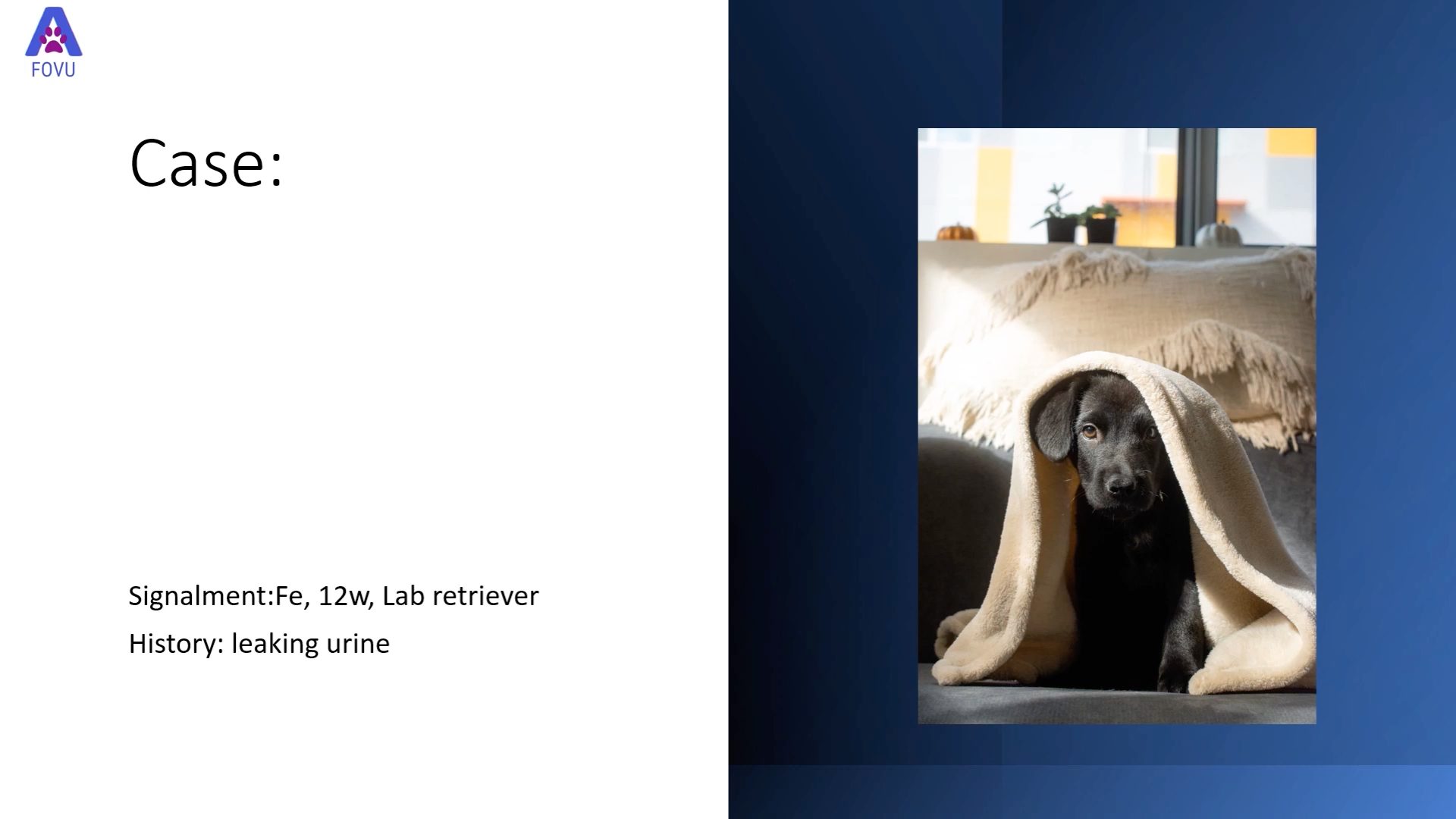 History: Twelve-week-old female Labrador Retriever, leaking urine.