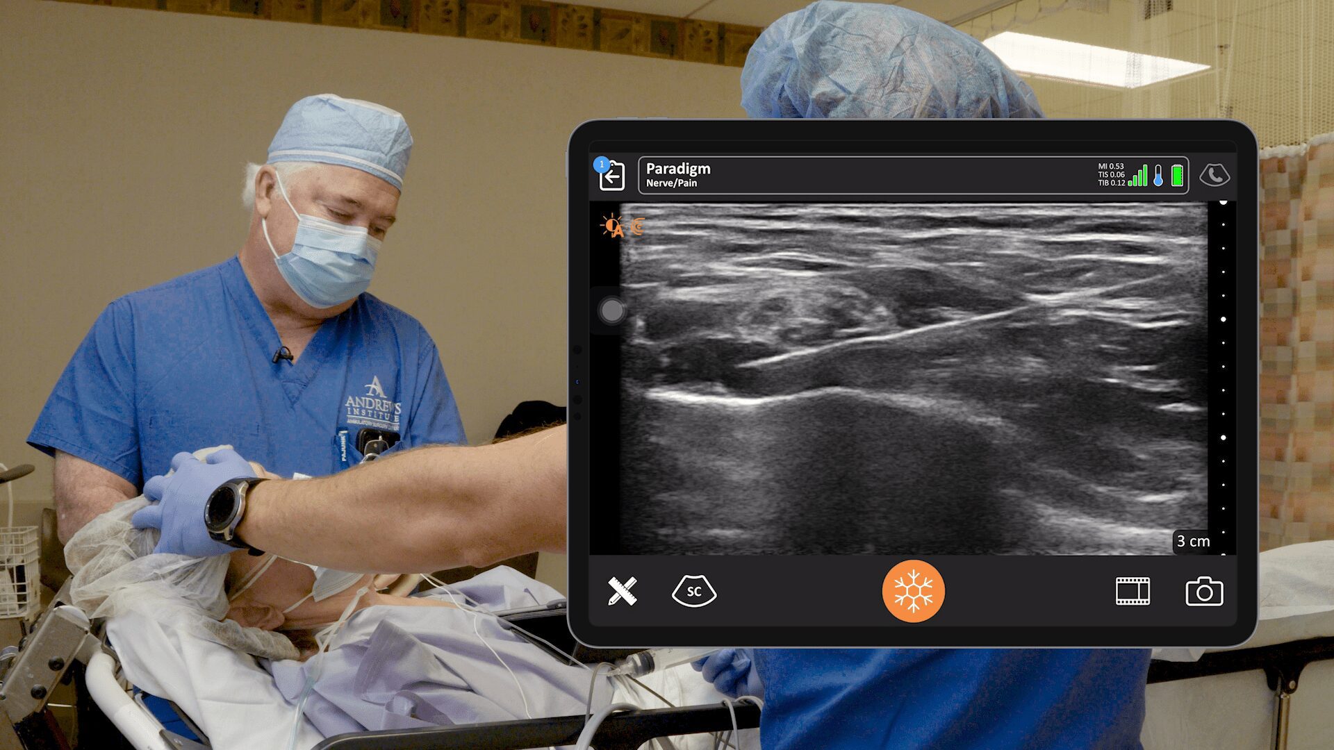 You have to be fast. You don’t have a lot of time to drag a big ultrasound around with you. The best thing about the Clarius is it’s pretty simple and very mobile, so I can use it in different areas. I can go quickly to the operating room, do an intraarticular injection in the knee. Then I can go to the recovery room and do a quick superficial cervical plexus block if needed there. I can also take it with me to our physical therapy area for a follow-up after surgery. It’s very easy to hold. You can scan for a good long time and really not get tired because it’s so lightweight and compact.”