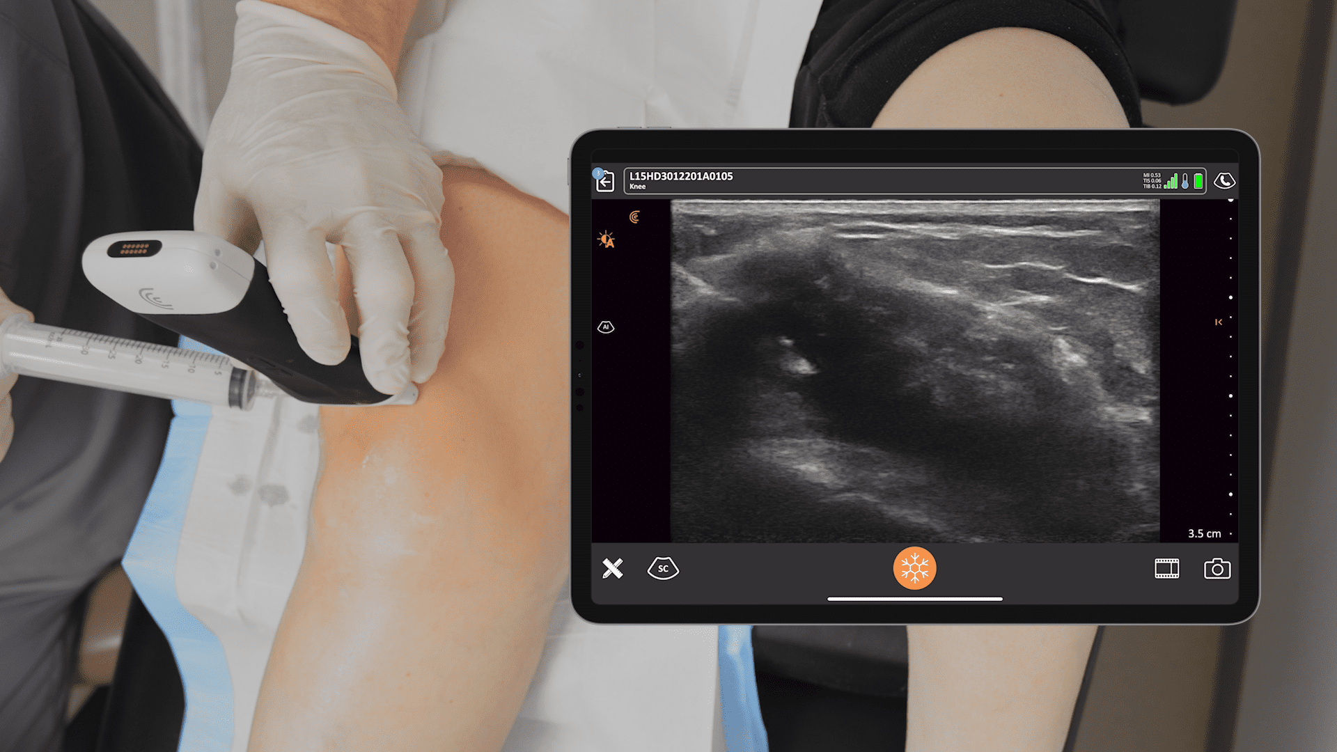 The Clarius L15 HD3 is the perfect probe for sports medicine,” says Dr. Frank Johnson. “When I compare that with the sort of clamshell machines, or other machines, the Clarius just outperforms them because it’s so much more flexible. With a tablet on a stand that I can move around quite easily, with no cords to trip over, it’s a treat to use.”