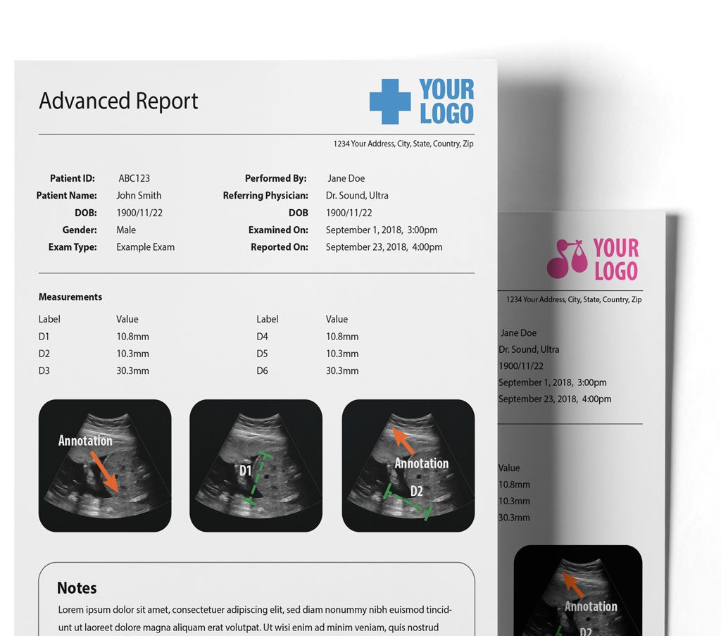 Export any exam on Clarius Cloud for printing or archiving. Our easy tools allow you to customize your PDF.