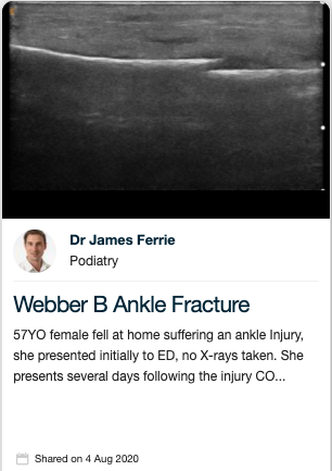 There was extensive oedema and focal pain on palpation of the distal fibula. Within several seconds of placing the Clarius L15 HD over the fibula, I could see the fracture. The long axis view demonstrates discontinuation of the cortex of the fibula with an effusive dome. X-rays confirmed the Webber B fracture.