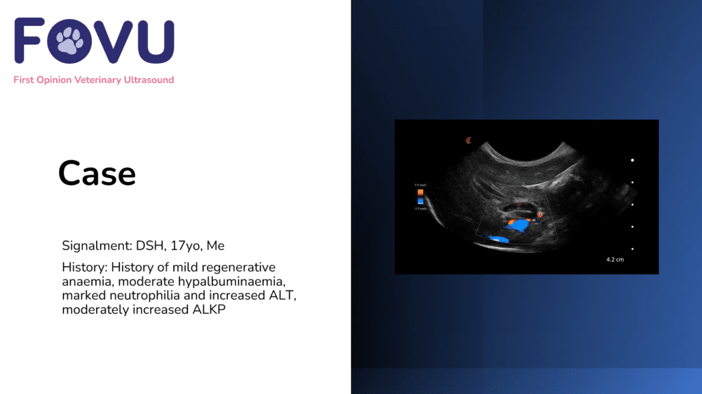 Small amount of free fluid in the abdomen (diaphragmatico-hepatic view) suggests an AFAST score 1/2.