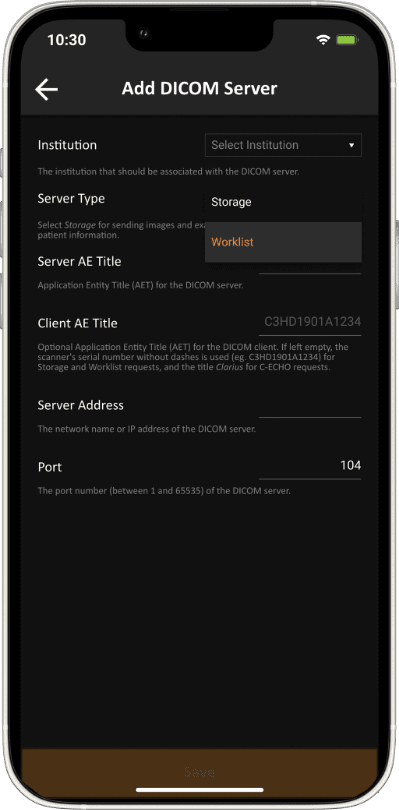 Partagez un examen terminé avec un collègue depuis l’Application ou le Clarius Cloud.