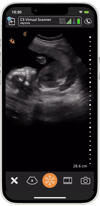 Gardez les mains libres en demandant à votre échographe de se figer, de régler la profondeur et le gain, de capturer des images et d’enregistrer des vidéos, et bien plus encore !