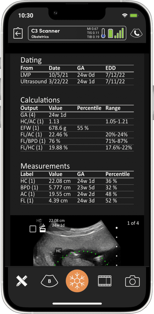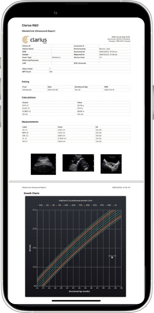 Obtenez davantage d’informations en obtenant des sorties automatiques d’indications de percentiles de croissance, ainsi que des rapports anatomiques courants.