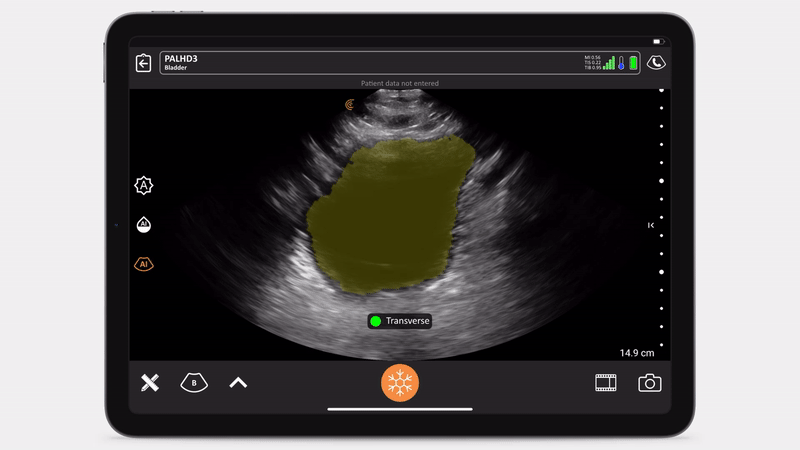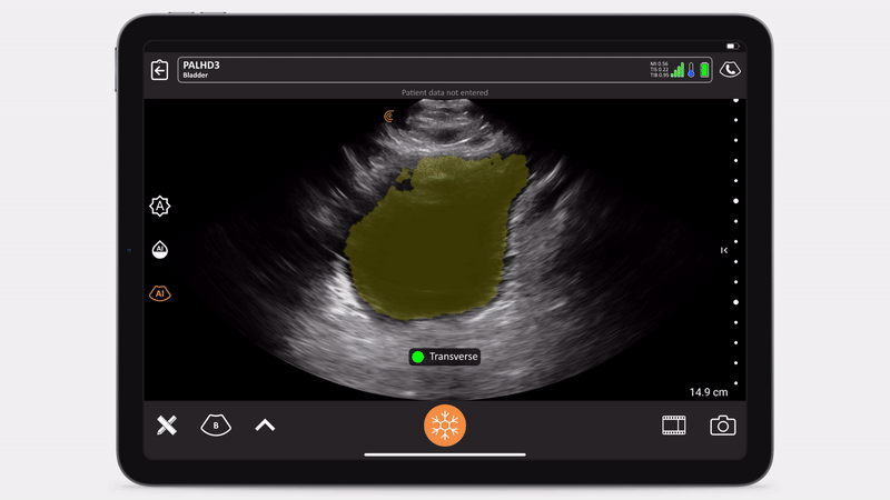 Clarius Bladder AI is a non-invasive solution that automatically and accurately measures bladder volume in seconds, saving time by improving workflow and efficiency. An affordable, all-in-one solution, Clarius HD3 integrates bladder scanning with ultraportable whole-body ultrasound for abdominal, pelvic, and thoracic imaging, and guiding precise IV access.