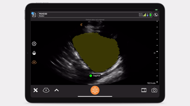 Bladder AI identifies and labels both sagittal and transverse views of the bladder, allowing clinicians to obtain comprehensive imaging for precise and reproducible measurements.