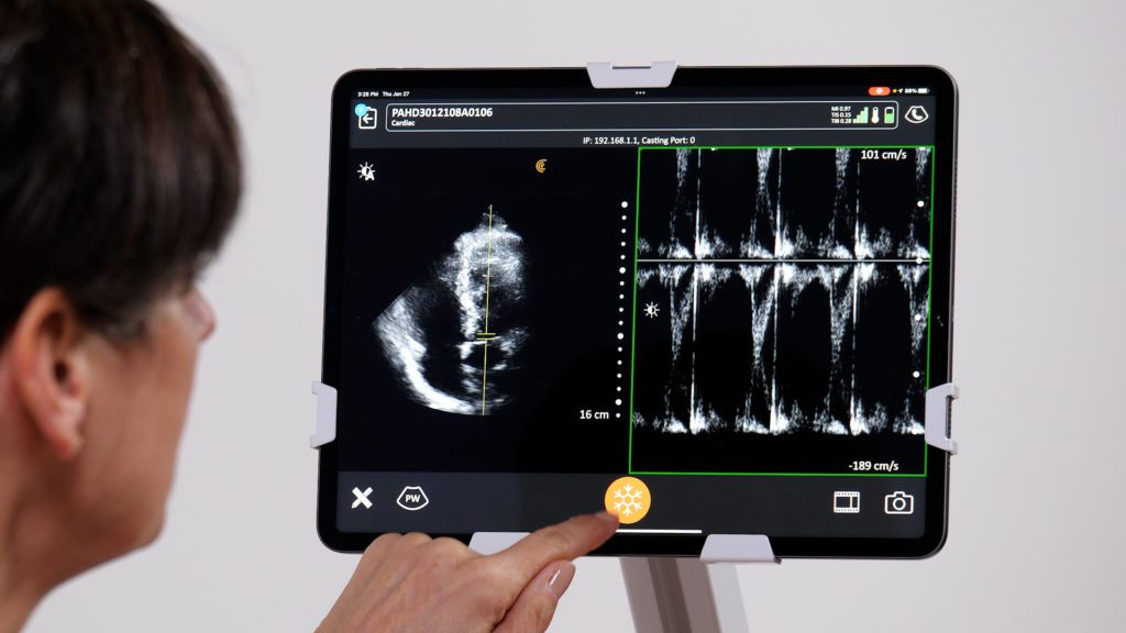 When the Cardiac preset is selected with the C3 or C7 scanner, Virtual PA is automatically launched, creating a smaller imaging footprint ideal for cardiac imaging between the ribs.