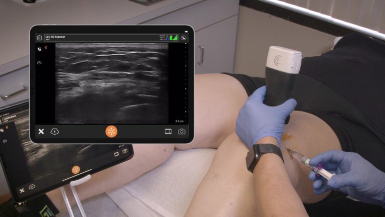 Dr. Alan Hirahara performs an intra-tendinous PRP injection using ultrasound guidance to bring pain relief to a patient suffering from lateral epicondylitis.
