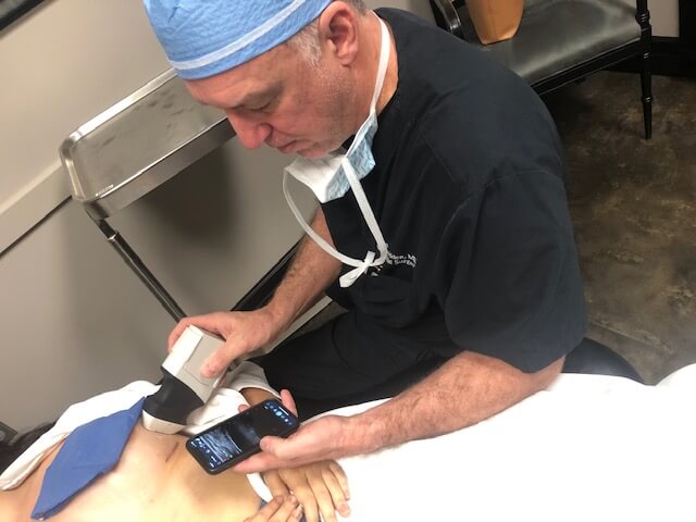Ultrasound is great in preventing complications by looking for the vascular anatomy, by looking at where the filler has been placed in the patient, previous to your injection. There are certain times when you don’t actually want to inject these patients, particularly if they’ve had silicone. And silicone shows up very well on ultrasound.”
