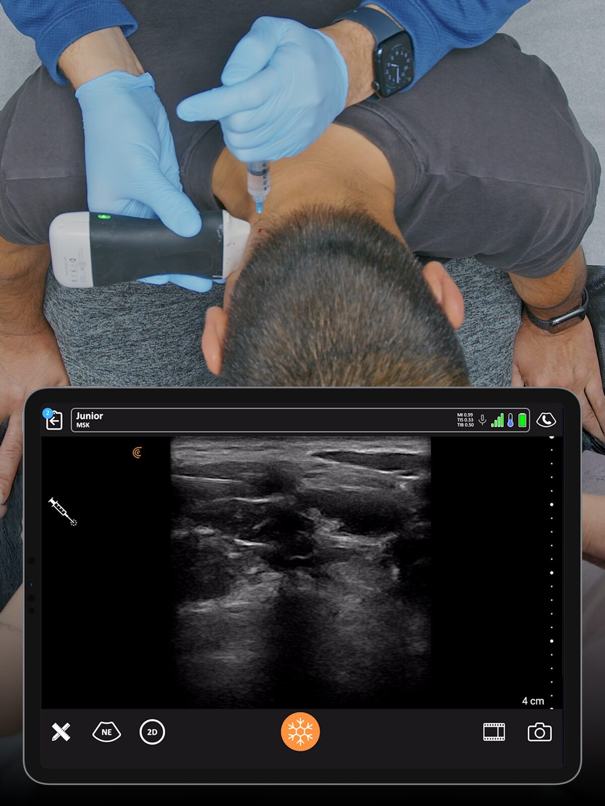 Visualize targets in real time for precise nerve blocks and corticosteroid injections—reducing injectate volumes and boosting safety, confidence, and patient outcomes.